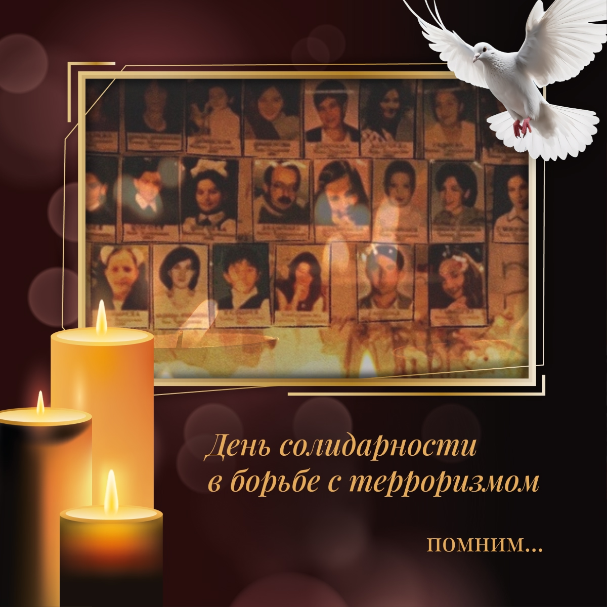 В этот день Россия отдает дань памяти тысячам соотечественников, погибшим от рук террористов в Беслане, в театральном центре на Дубровке, в Буденновске, Первомайском, на Северном Кавказе, при взрывах жилых домов в Москве, Буйнакске и Волгодонске, при совершении других террористических актов.