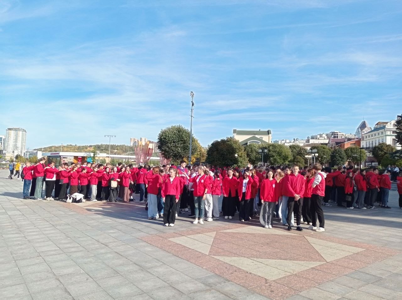 Студенты группы Д1-24 с куратором группы Ириной Герасимовой и советником директора по воспитанию Валентиной Хмельниковой приняли активное участие в ярком флешмобе, посвящённом знаменательному событию — торжественному вступлению в должность Главы Чувашской Республики.